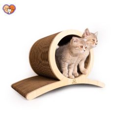 این مدل با طراحی زاویهدار، دارای دهانههای دوطرفه و فضای داخلی وسیع است که باعث شده هم بهعنوان لانه و هم اسکرچر قابل استفاده باشد. کارتن فشرده پنجلایه در بخش مرکزی و دیوارههای چوبی مقاوم در کنارهها، دوام بالا و ظاهر حرفهای به محصول دادهاند.