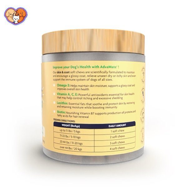 مکمل ریزش مو سگ, ضد ریزش مو حیوانات, مکمل تقویت پوست سگ, مکمل پوست و موی پت, مکمل پوست خشک سگ, بهترین مکمل برای درخشش موی سگ, درمان خشکی و خارش پوست حیوان خانگی, AdvaCare Skin & Coat