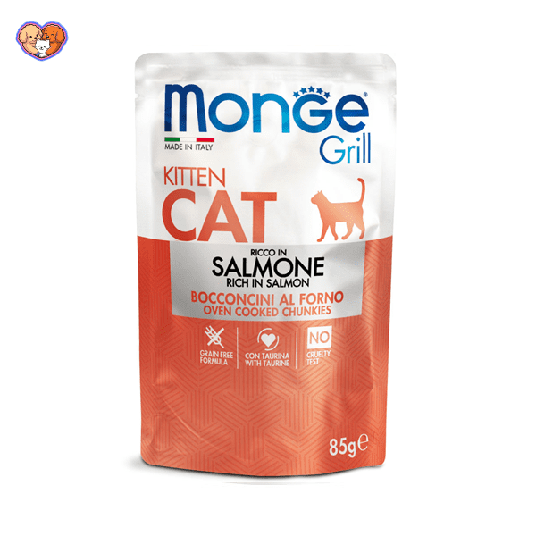 خوراک ژلهای گربه Monge Grill Kitten با تکههای سالمون یک غذای مرطوب و خوشمزه است که بهطور خاص برای تولهگربهها طراحی شده. ترکیب تکههای لطیف گوشت سالمون با بافت ژلهای طبیعی، باعث تحریک اشتها شده و در عین حال مواد مغذی مورد نیاز برای رشد سالم را فراهم میکند.